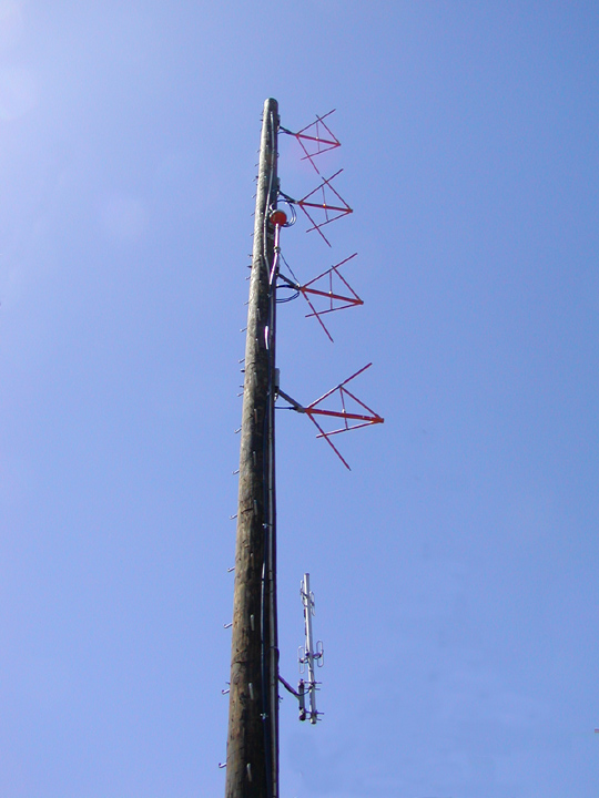 Our studios are in Memorial Hall on the Stanford campus. There are two control rooms, both using Broadcast Audio Series IV consoles; the consoles were purchased around 1988 and 1991. Other studio equipment includes Technics SL1200 and SP10 turntables, Marantz PMD340 CD players, Scott Studios digital "cart" machines, Otari open reel tape decks, Tascam DAT and cassette decks, and telephone interface gear from Comrex, Symmetrix, and JK Audio. Audio production is on Macintosh G5 computers. Our air chain includes a dbx Professional Products Model 1066 performing dynamic compression, as well as an Optimod 8300 stereo generator, which has a limiter to prevent overmodulation. FACTOID: The cable run from our studios to the transmitter uses 10,687 feet of 22 AWG twisted pair telephone cable (50 pair). Other KZSU cables run from Memorial Hall to various major venues on campus, to facilitate coverage of events at those locations. We installed most of these lines ourselves. In addition, an AT&T leased circuit runs to Palo Alto City Hall and carries our weekly City Council broadcasts. Up at the transmitter shack, an equalizer compensates for the cable frequency response and feeds the Optimod stereo generator, which drives a PTEK FM300ES transmitter. Although the transmitter site is normally unattended, with equipment controlled from the studio, it has a mini-studio so it can be used to originate our programming in an emergency if the Memorial Hall facility is unusable. A Jampro JCP-4 four-bay circularly polarized antenna is mounted on a 65-foot wooden pole; antenna height is about 520 feet MSL [height above Mean Sea Level]. It is located in the foothills behind the campus near the Big Dish. The existing antenna was first installed in 1971; the wooden pole was replaced in Spring 2000. We have an effective radiated power of 500 watts with both horizontal and vertical polarization. That's actually 500W vertical, 500W horizontal. Note that ERP is the amount of power you'd need to feed into a simple dipole antenna to produce the same field strength, and is rated for the horizontal plane. Stations are permitted to radiate the same energy, or less, on the vertical plane. So KZSU's "500 watts" is figured by: transmitter power = 250W Like other radio stations, KZSU employs the Emergency Alert System (EAS). EAS uses multiple redundant paths to receive emergency information; KZSU's EAS system monitors KCBS, (740 AM), KQED(88.5 FM), and the National Weather Service. In case of power failure, the studio and the transmitter site are each equipped with uninterruptible power supplies (UPS) and a standby generator. Additionally, we have a secondary hookup at Stanford's Emergency Operations Center to help disseminate important information in the event of a campus-wide (or larger) emergency. We installed the cabling and equipment for the EOC facility in 1994. |